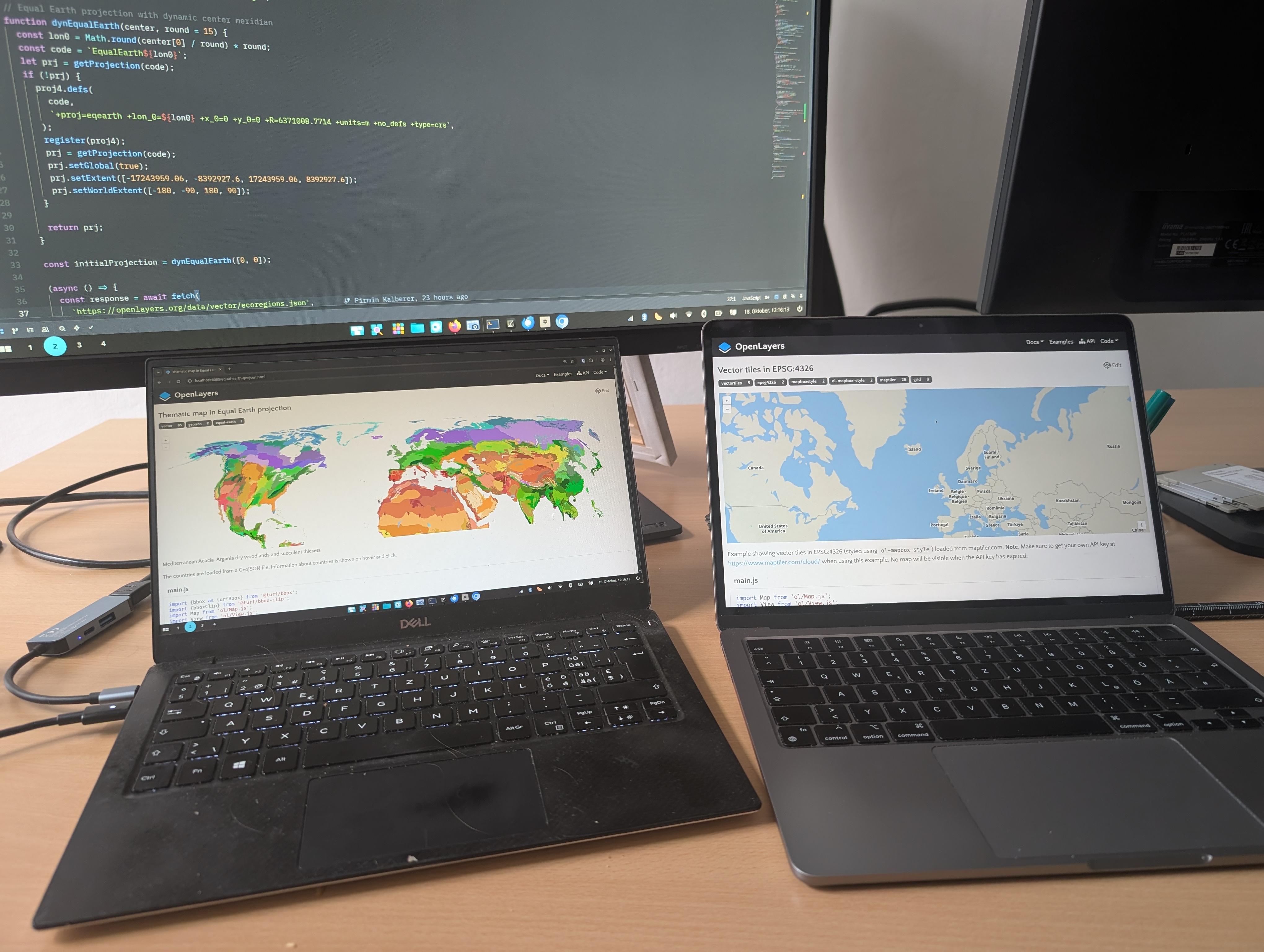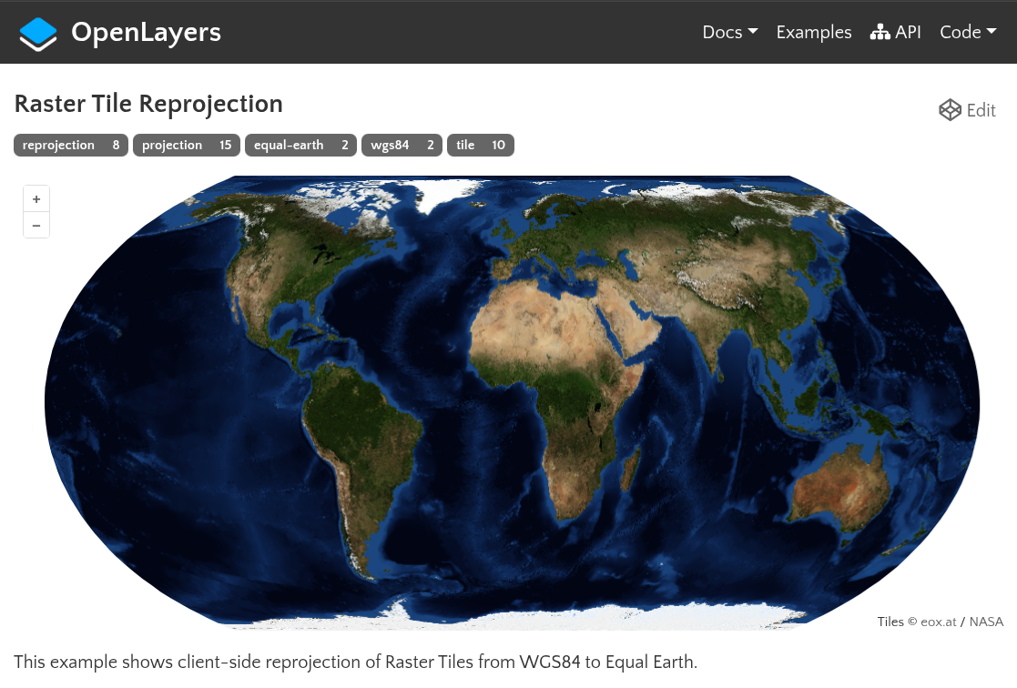 In the afternoon I had an interactive map in Equal Earth projection based on a WGS84 raster tile service.